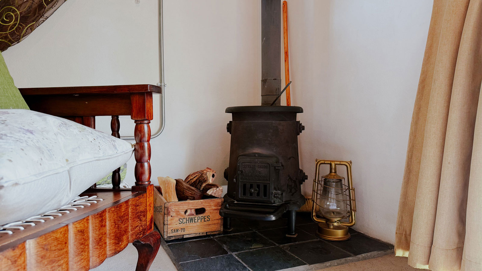 A wood-burning stove adds warmth and atmosphere on cooler evenings, while the living area opens out to your own private garden and patio, a lovely space to soak up the sun or enjoy a braai under the stars.