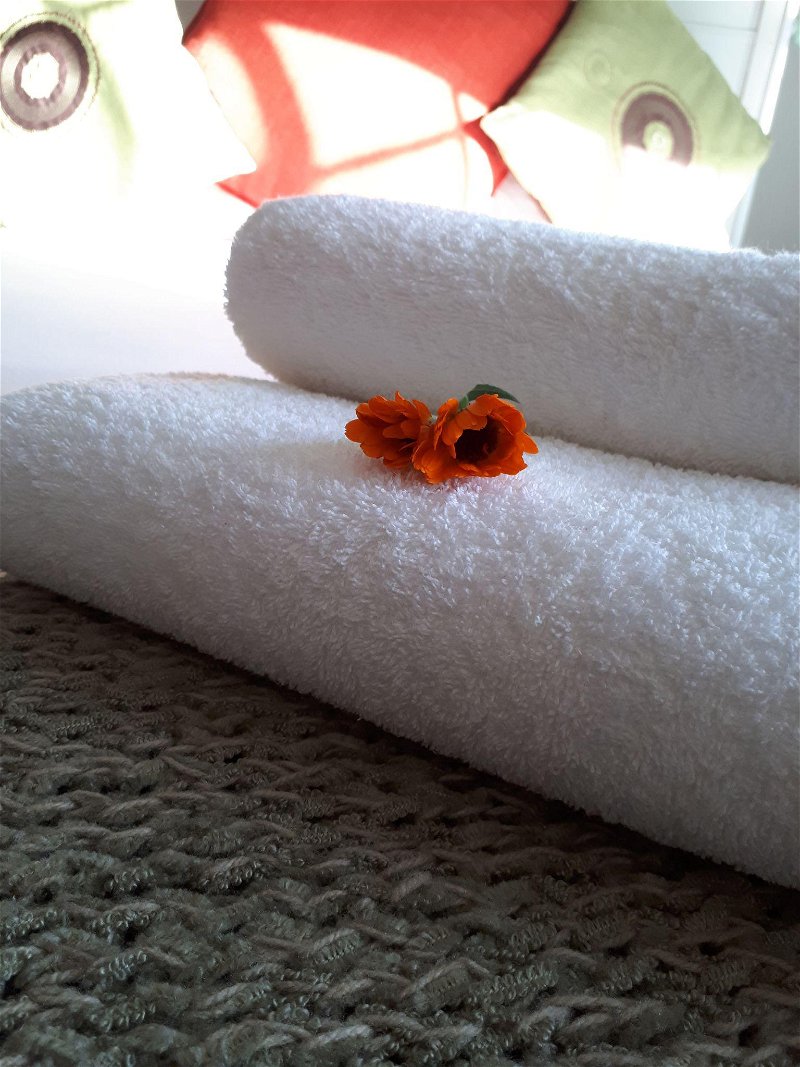 This charming and cozy apartment features an open-plan living area with a small lounge, dining space, and a fully equipped kitchen, perfect for preparing meals or simply enjoying a relaxed cup of coffee.